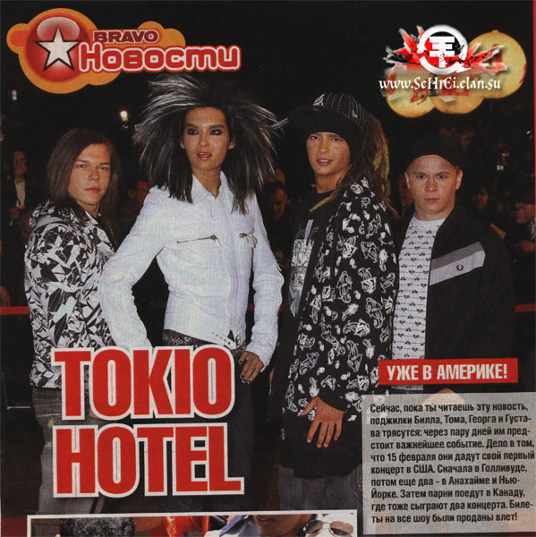 Сейчас, пока ты читаешь эту новость, поджилки Билла, Тома, Георга и Густава трясутся: через пару дней им предстоит важнейшее событие. Дело в том, что 15 февраля они дадут свой первый концерт в США. Сначала в Голливуде, потом еще два - в Анахайме и Нью-Йорке. Затем парни поедут в Канаду, где тоже сыграют два концерта. Билеты на все шоу были проданы влет!